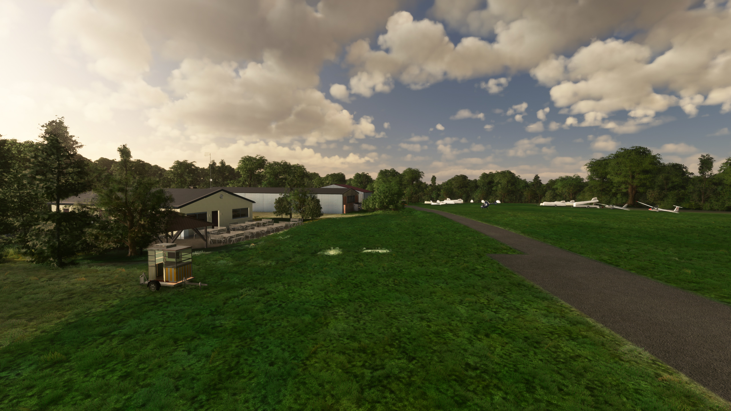 The glider airfield at Stillberghof in southern Germany was totally missing in MSFS 2020. This add-on adds the field to the simulator with photo-real custom buildings and objects. Texturing is mainly PBR, partly from general textures, partly from photographs taken on-site. Terrain elevations and vegetation placement has been improved.